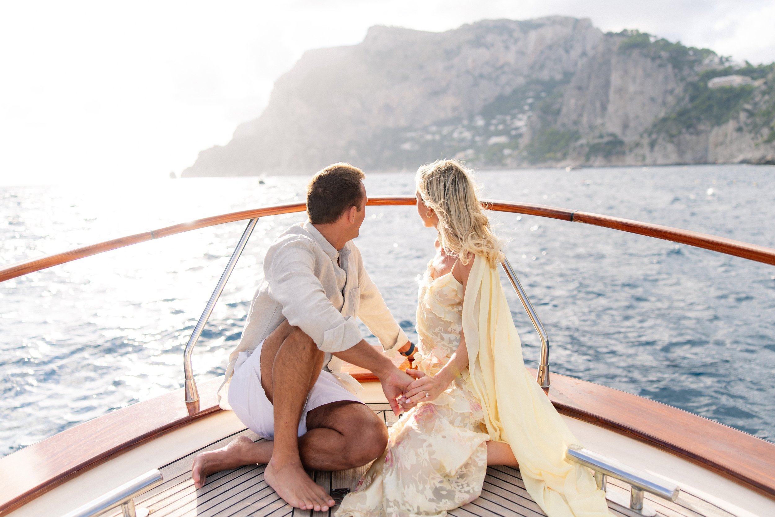 They lounged on the rocky shore and watched boats shuttle across the Amalfi coastline. Before swimming back to their boat, Ryan knelt and asked Quinn to marry him. And of course she said “yes!”